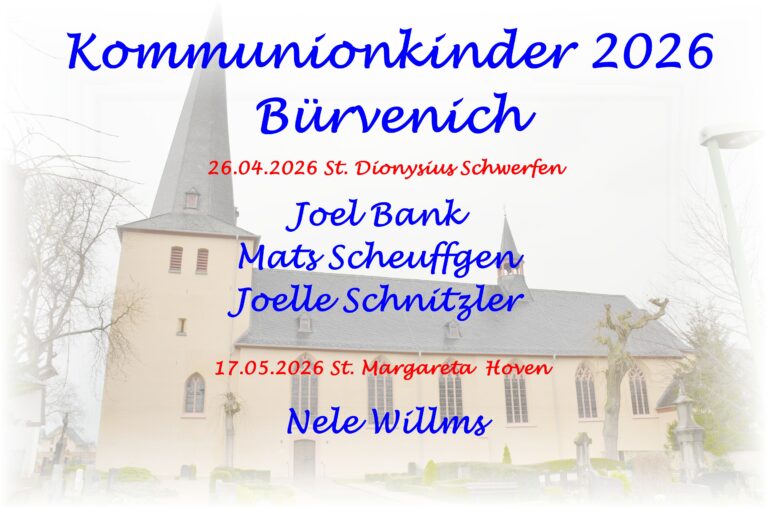 12.03.2026 „Kommunionkinder 2026“ unter Bilder 2026 und Termine eingefügt. (2 Termine 26.04. Schwerfen u. 17.05.2026 Hoven)