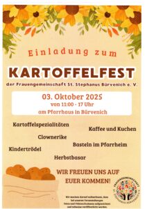 13.09.2025 Flyer „Einladung Kartoffelfest“ und „Anmeldung Adventskalender“ unter Info/Flyer eingefügt.