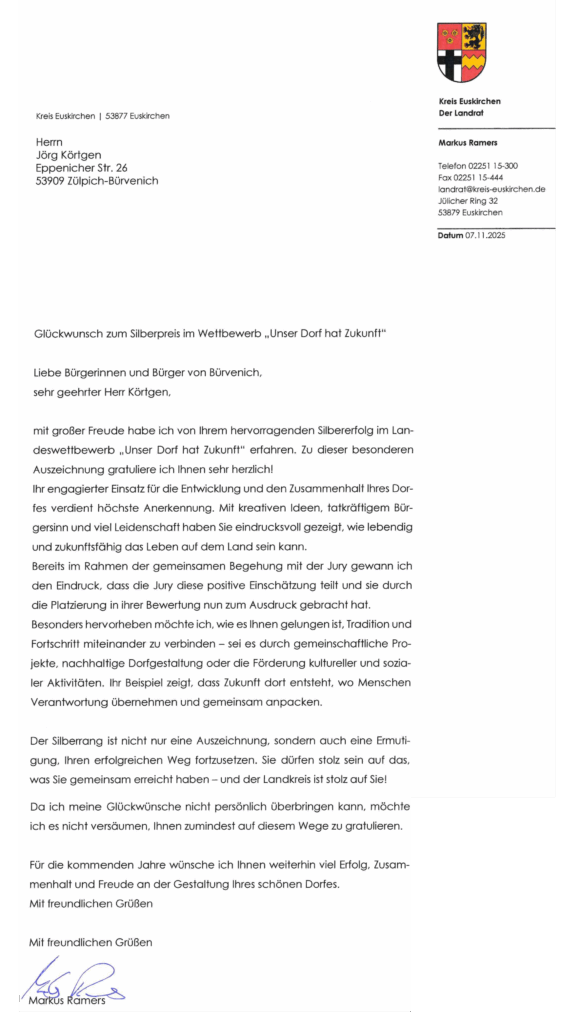 Glückwünsche vom Landrat Markus Ramers Kreis Euskirchen